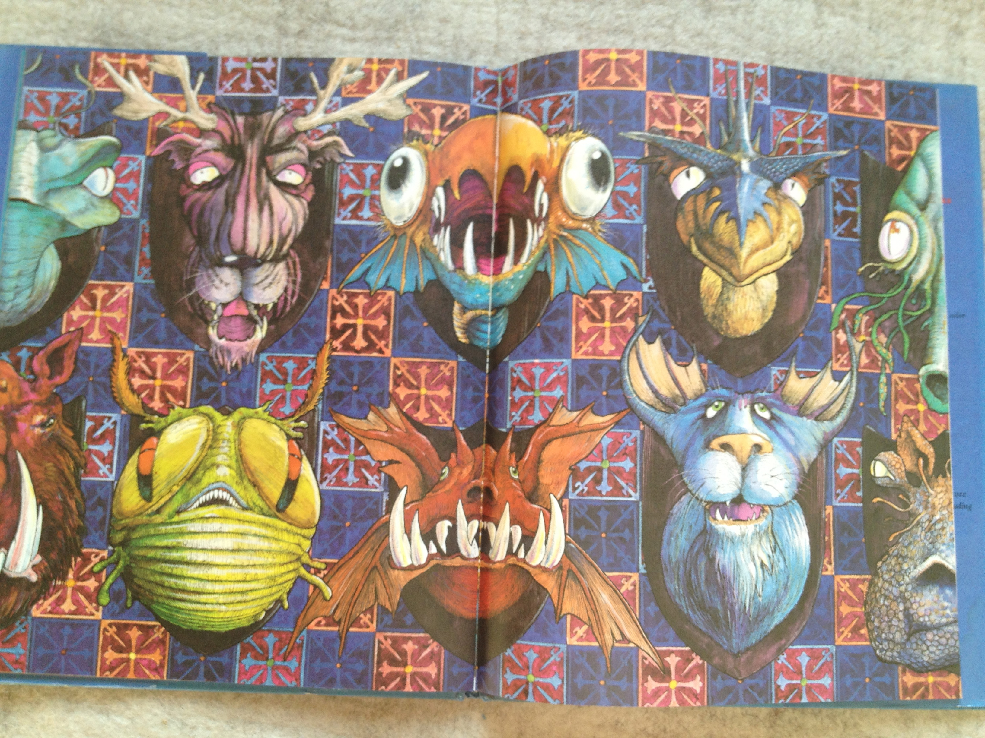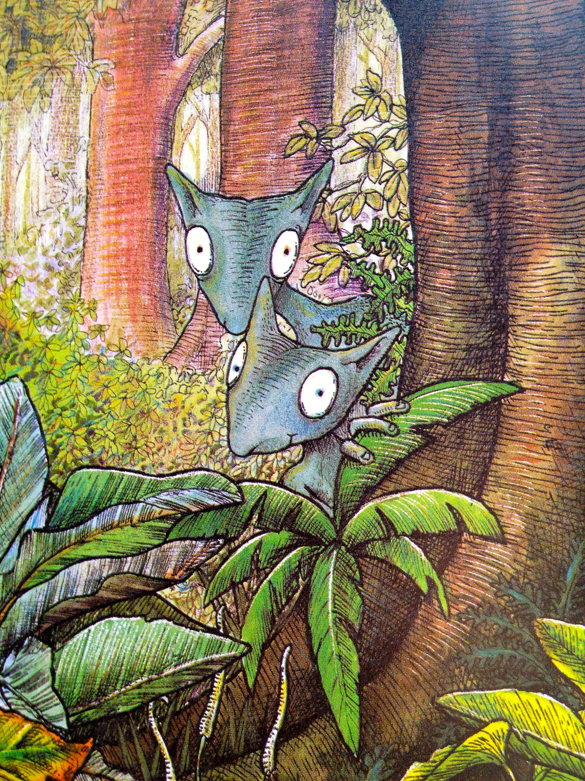 Look, Oona, the Borogroves! She answered: I think one is a Mimsey. We tracked the two pale green creatures, hidden skillfully on nearly every page. They were the “team” that went with the hero on his adventure. And the white horse, Borogroves and Mimsey – and us.